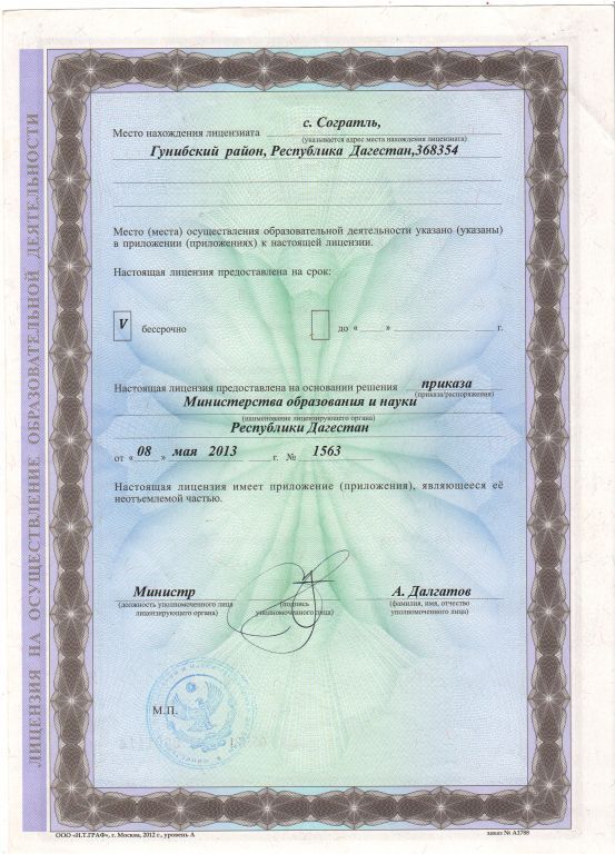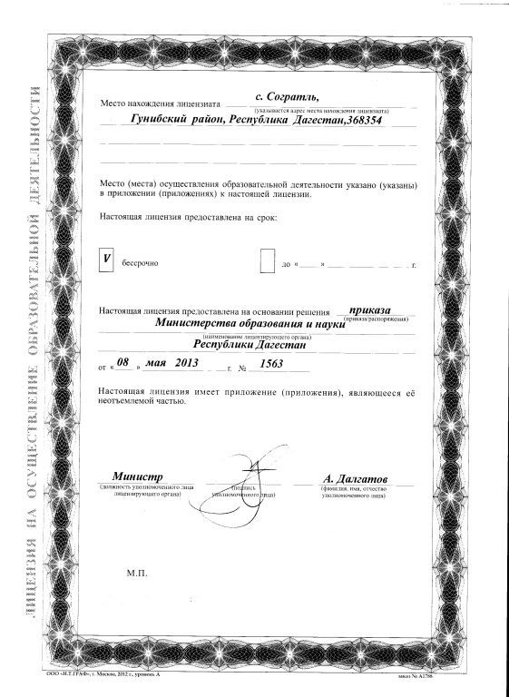 | Адрес местонахождения образовательной организации* | 368354, республика Дагестан, Гунибский район, село Согратль, Центральная улица, дом 222 |